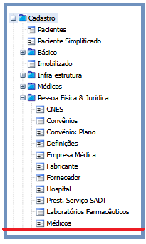 Clicar no menu lateral, Pasta Cadastro – Pessoa Física & Jurídica – Médicos.