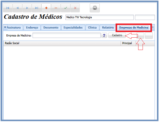 Caso o médico preste serviço para a entidade através de uma empresa, é possível vincular a empresa ao médico através do botão (?) pesquisar.