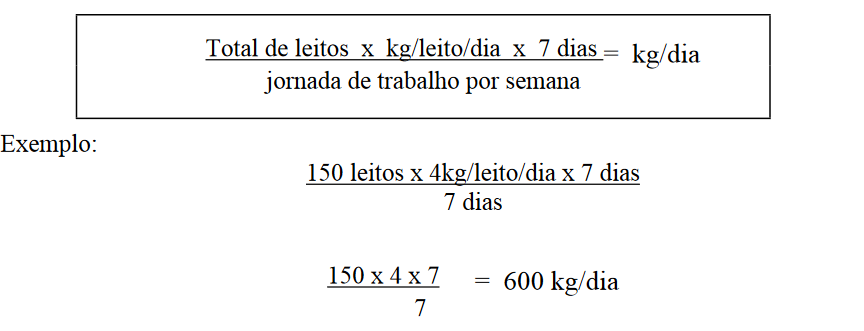 Capacidade total de leitos de um hospital: 150 leitos, lavando 600 kg de roupa por dia;