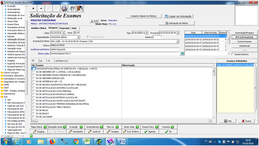 Na solicitação de exames de imagem.