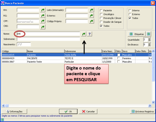 Primeiro passo: O usuário deverá localizar o paciente.