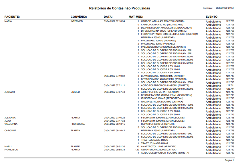 RELATÓRIO DE CONTAS NÃO PRODUZIDAS PACIENTE SERVIÇO