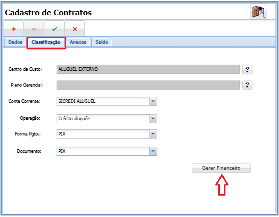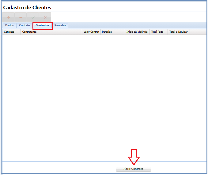 Na aba contratos, ao clicar no botão ‘Abrir Contrato’, o usuário poderá criar o contrato do cliente.