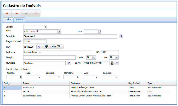 Para inserir um novo cadastro, basta clicar no botão + e repetir o processo anterior.