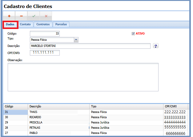 Para acessar o cadastro de clientes, o usuário deverá seguir os passos abaixo: