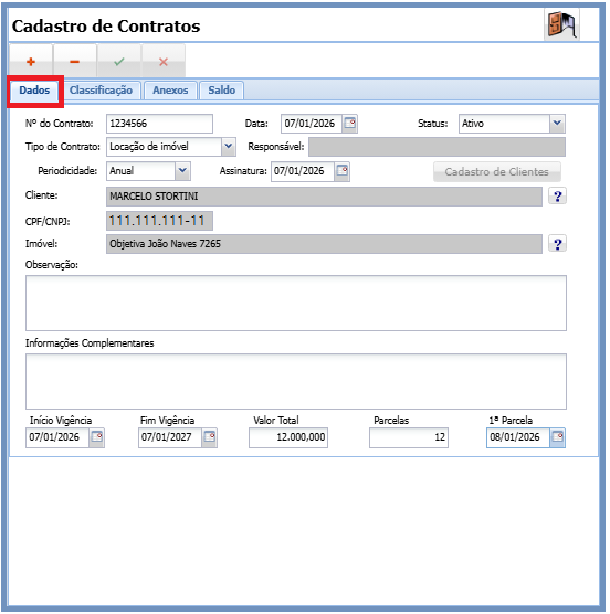 Nesta tela, o usuário poderá preencher o contrato.